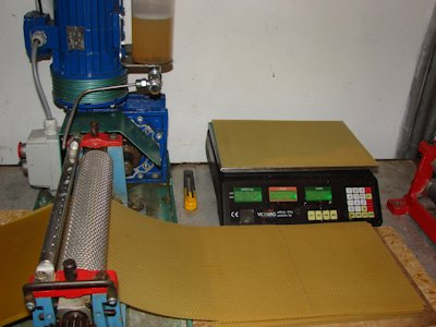 Wykonuję węzę z powierzonego wosku oraz mam w ofercie węzę z własnego wosku. Węza jest wykonywana na elektrycznych walcach firmy Lankoff z Kielc, bez dodatków chemicznych, 100% naturalny wosk. Badana w Instytucie Weterynaryjnym w Puławach. Tłoczona na zimno, przy niskich temperaturach nie łamie się. Wymiar i grubość wykonuję na życzenie pszczelarza.